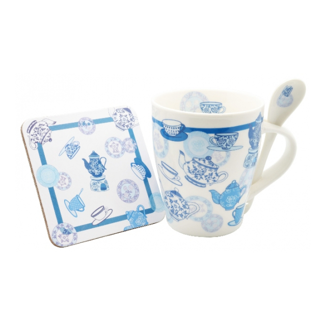 カワイイ!コースター付き皿柄スプーン付きマグ