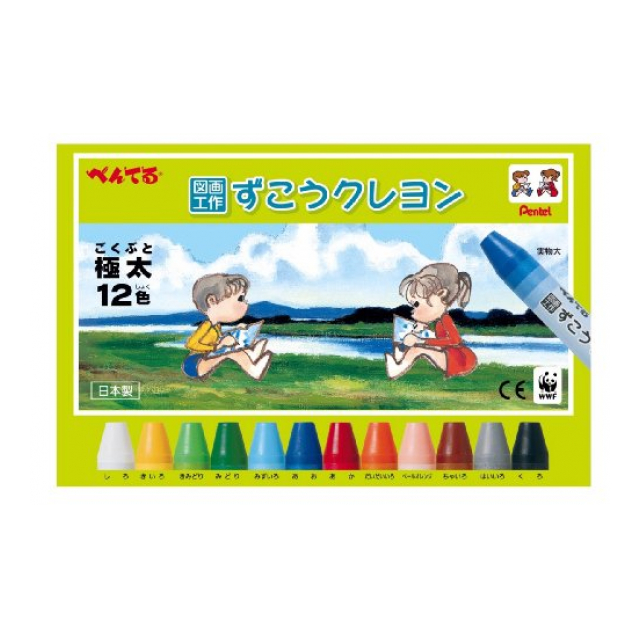 ぺんてる ずこうクレヨン 12色 1-12 PTCG1-12 00020509