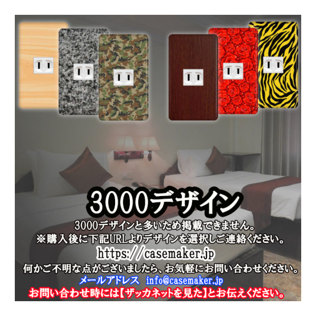 ※写真はイメージです。実際の商品とは色味等が若干異なる場合があります。 ※受注生産品のため返品・交換の対応はしておりません。 ※受注製造品のためご注文後のキャンセルは承ることができません。 【取扱商品】 ※掲載している商品は、パナソニック 【コスモシリーズワイド21】 タイプです。 3000デザインと多い為、画像の掲載ができません。 ※ご注文後、下記URLより商品名、デザイン番号、数量をご連絡ください。 ※何かご不明な点がございましたら、お気軽にお問い合わせくださいませ。どうぞよろしくお願いいたします。 (お問い合わせ時には「ザッカネットを見た」とお伝え下さい。 ホームページhttps://casemaker.jp Eメールアドレス info@casemaker.jp |