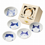 SHICHITA (七夕)可愛い猫柄 豆鉢揃 木箱入 日本製 美濃焼