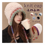 2025秋冬新作 レディース 帽子 ふわふわ ニット ひも付帽子 小顔効果 軽量 かわいい 防寒 保温 手編み