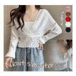 2025新作 レディース セーター ニット ツーピース トップス プルオーバー リブカットソー バックリボン付き