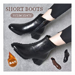 2025秋冬 ブーツ 靴 ショートブーツ 裏起毛 黒 スタイルアップ チャンキーヒール 脚長