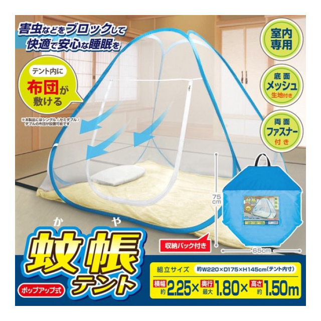 簡単展開で害虫などをブロック!「ポップアップ式蚊帳テント」