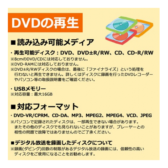 他のプレーヤーでは再生可能でも本製品では再生できない場合があります。
