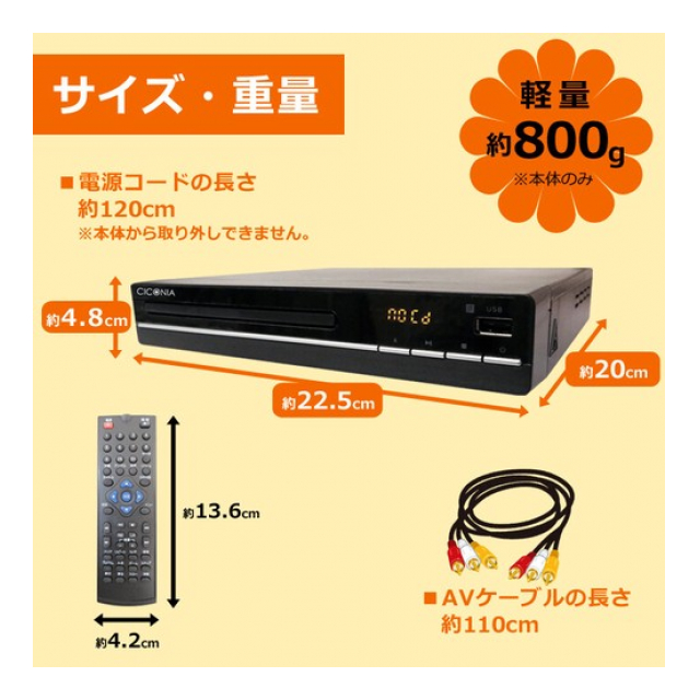 コンパクトサイズの据え置きタイプDVDプレーヤー