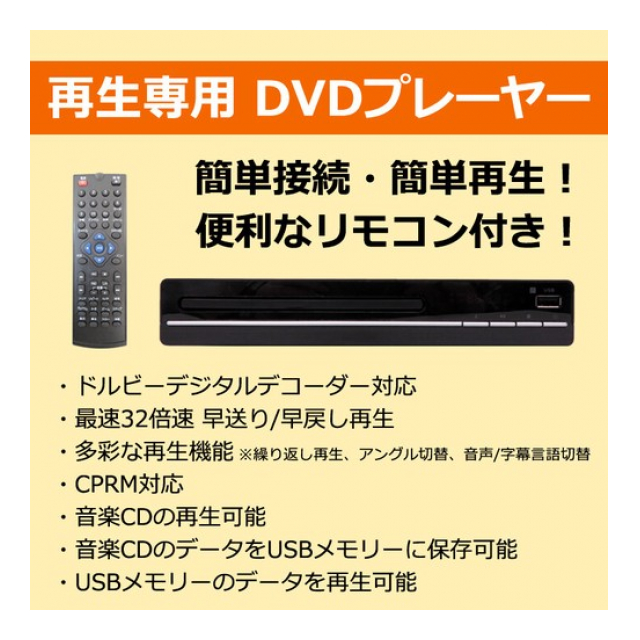 ●再生専用のDVDプレーヤーで、機械が苦手な方でも簡単に設置・再生できます。