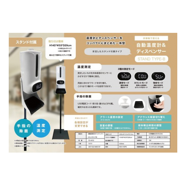 自動温度計&ディスペンサー スタンドタイプB YD-4012