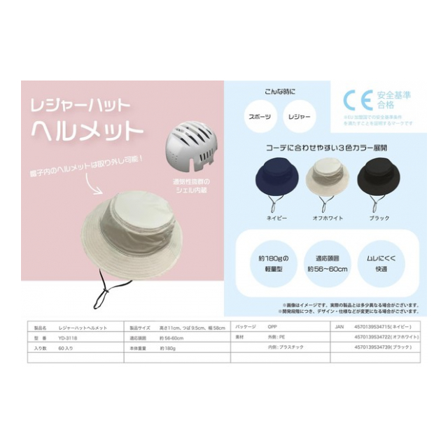 外側:PE 内側:プラスチック ■種類: 3色アソート※不平等になる場合がございます。 ■JAN: 4570139534715 (ネイビー) 4570139534722 (オフホワイト) 4570139534739 (ブラック) |