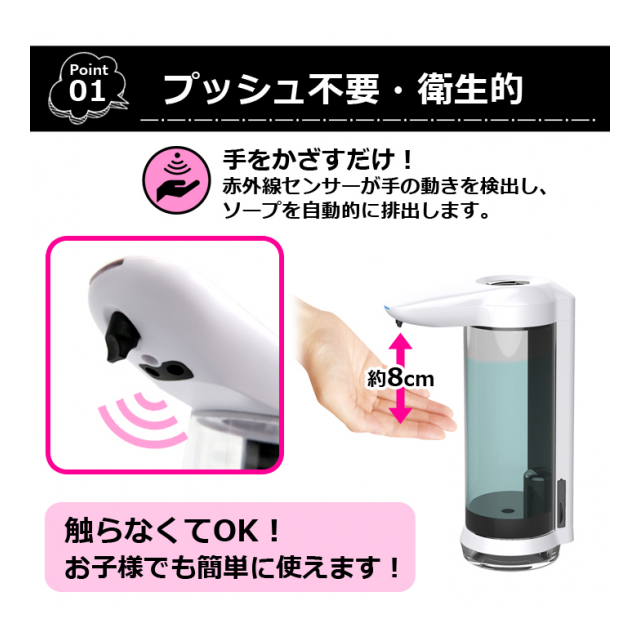 ○アルコールジェルを入れて手をかざすだけで簡単除菌