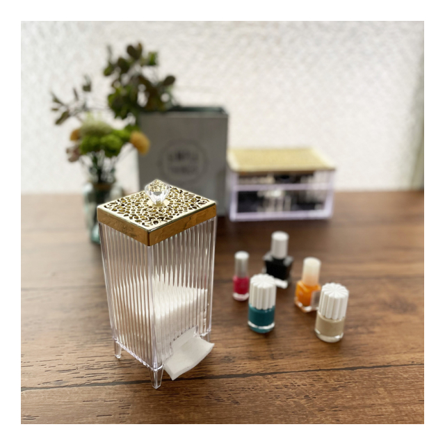 コットンケース コットンボックス 化粧綿入れ 綿棒入れ コスメボックス コスメ収納 小物入れ かわいい おしゃれ ジュエリー クリスタル ゴールド 雑貨 ゴージャス ネイルアート ネイルサロン ネイル ネイリスト プロ用 業務用 ヘアサロン エステサロン インテリア エレガンス