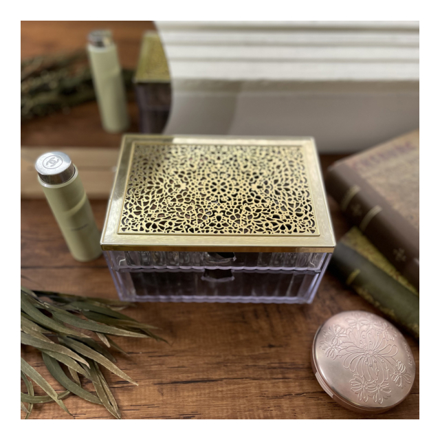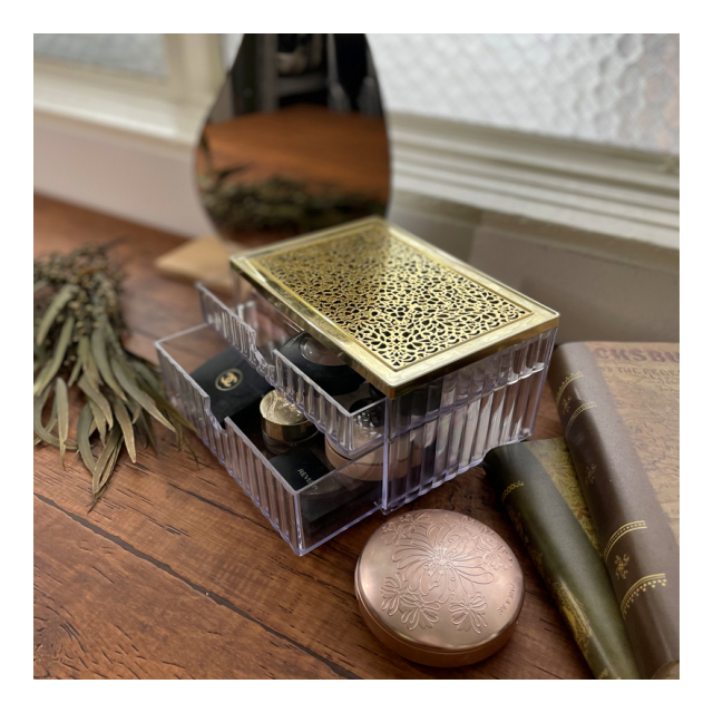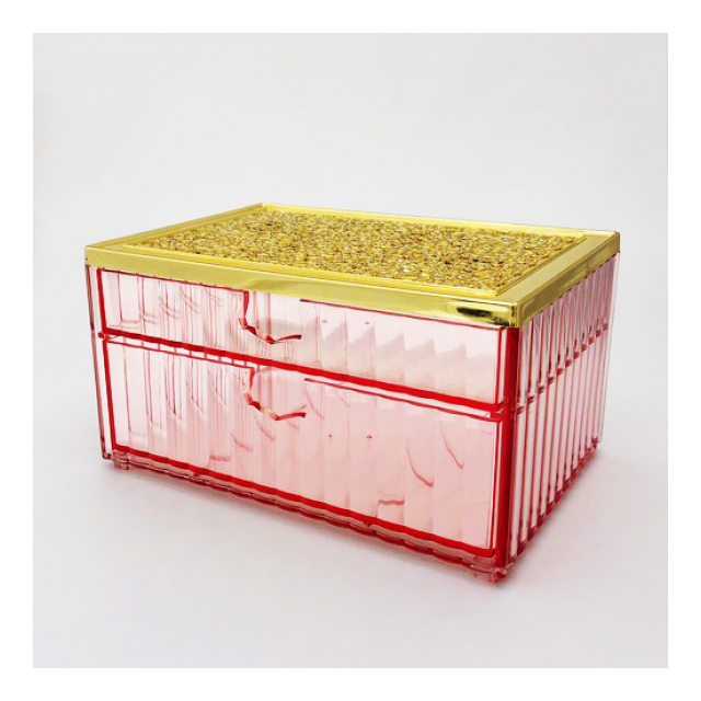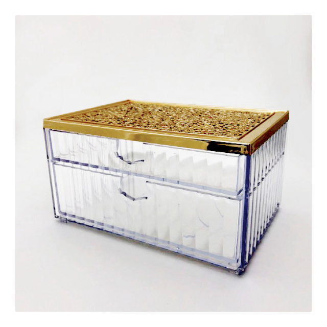 小物入れ 引き出し 2段階 コットンケース ビジュー ドロワーケース コットンボックス 化粧綿入れ 綿棒入れ コスメ収納 小物収納 かわいい おしゃれ ジュエリー ゴールド 雑貨 ゴージャス プロ用 業務用 ネイルサロン ヘアサロン エステサロン インテリア エレガンス