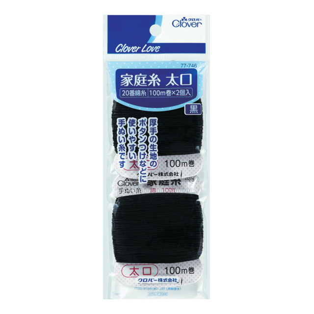 ■ 太口:太口の家庭糸は少し太めの綿糸で、厚地布のボタンつけなど、力強い縫製に便利です。しっかりとした縫製が求められる場面で活躍します。厚手の生地にもしっかりとした仕上がりをお約束します。