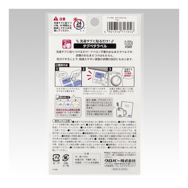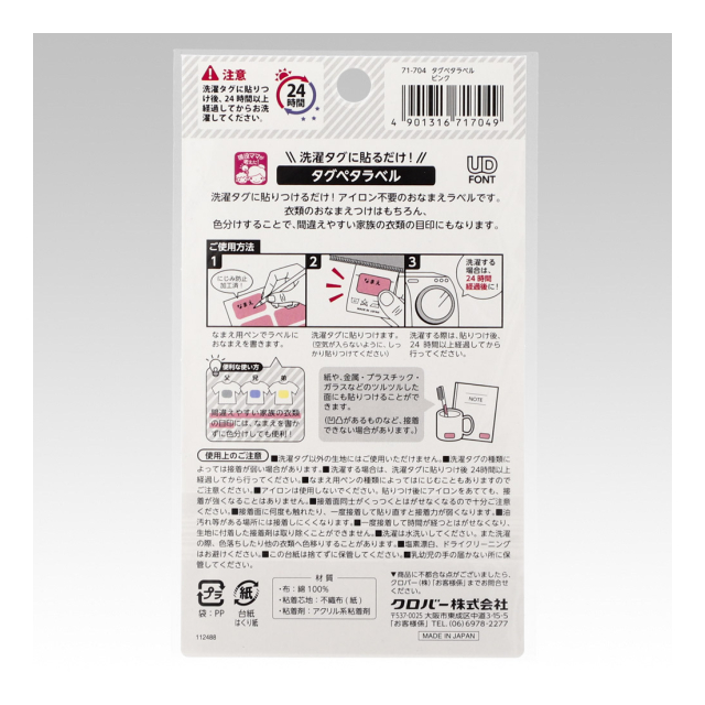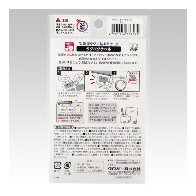 《クロバー》タグペタラベル(長方形)衣類のタグ用お名前つけラベル アイロン不要・洗濯OK! 【日本製】