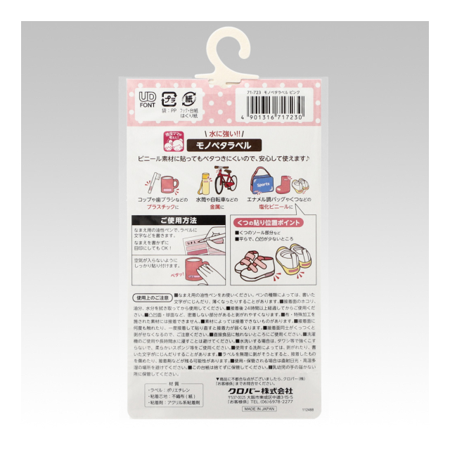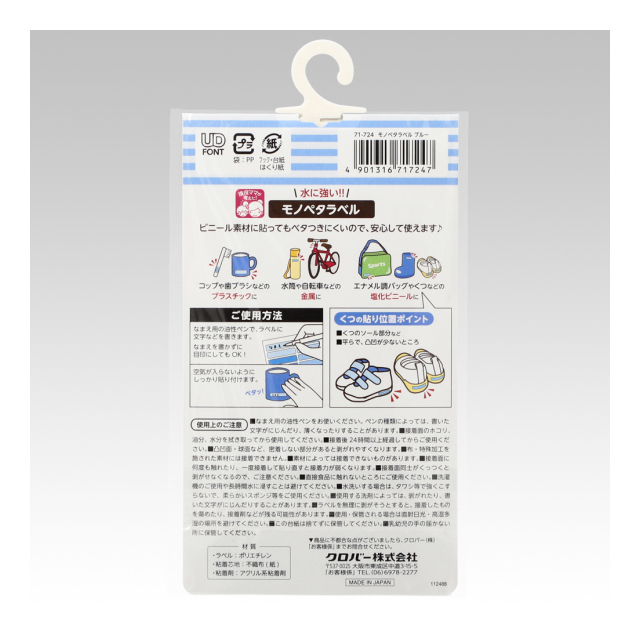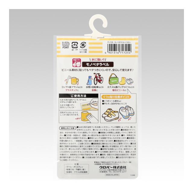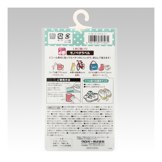 《クロバー》 モノペタラベル ビニール製バッグ、コップ、文具、上履きなどに 【日本製】