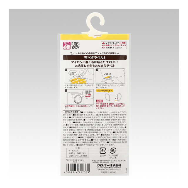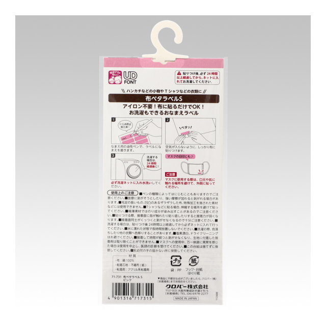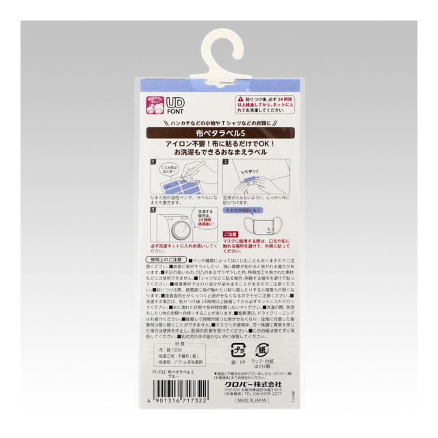 《クロバー》 布ペタラベル<S> 衣類やタオル、布製バッグなどの名前入れラベル 【日本製】