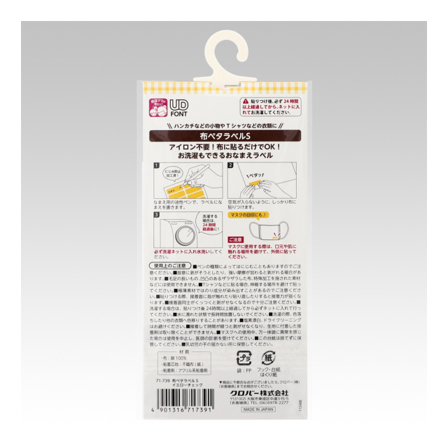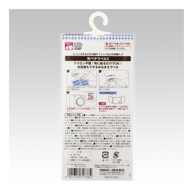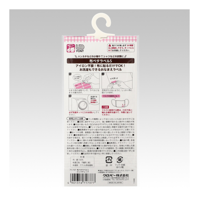《クロバー》 布ペタラベル<S> 衣類やタオル、布製バッグなどの名前入れラベル 【日本製】