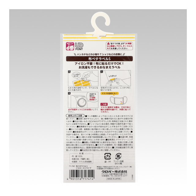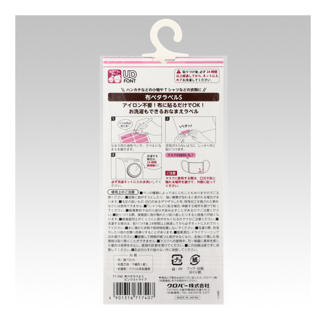 《クロバー》 布ペタラベル<S> 衣類やタオル、布製バッグなどの名前入れラベル 【日本製】