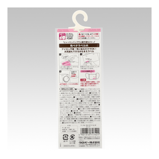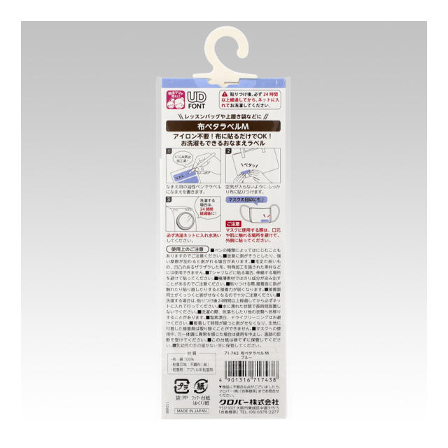 《クロバー》 布ペタラベル<M> 衣類やタオル、布製バッグなどの名前入れラベル 【日本製】