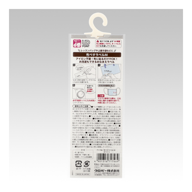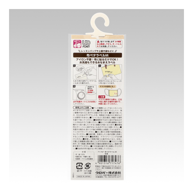 《クロバー》 布ペタラベル<M> 衣類やタオル、布製バッグなどの名前入れラベル 【日本製】