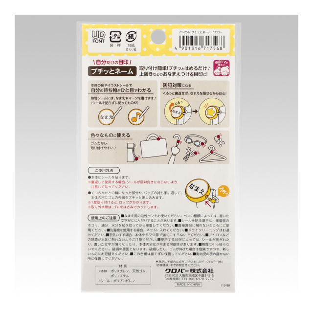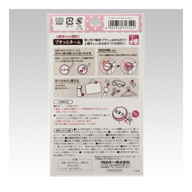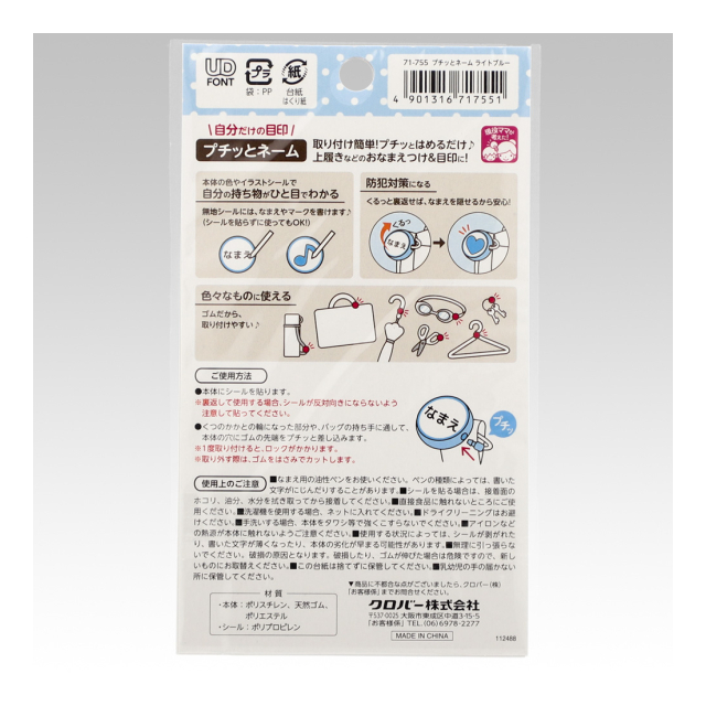 《クロバー》 プチッとネーム 取付けカンタン!上履きなどのお名前つけに便利