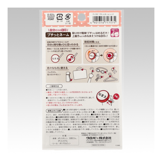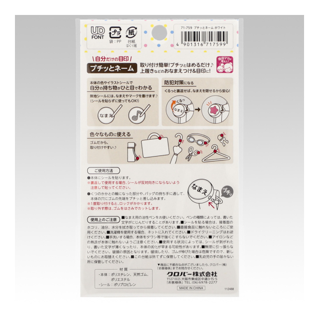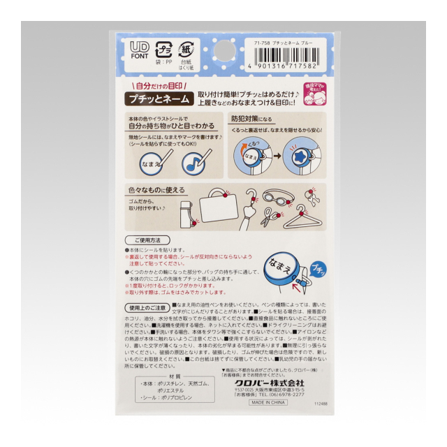 《クロバー》 プチッとネーム 取付けカンタン!上履きなどのお名前つけに便利