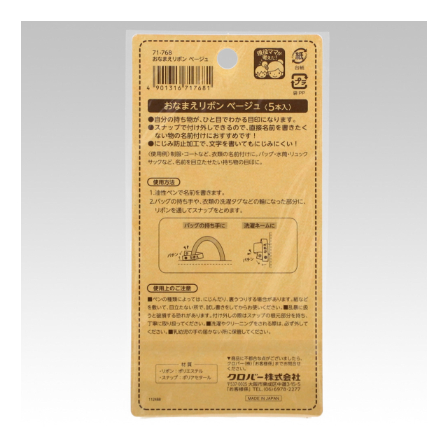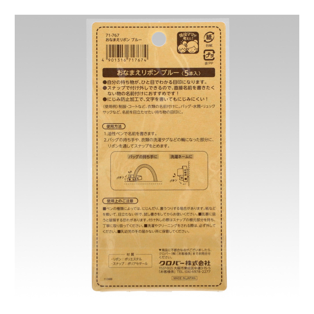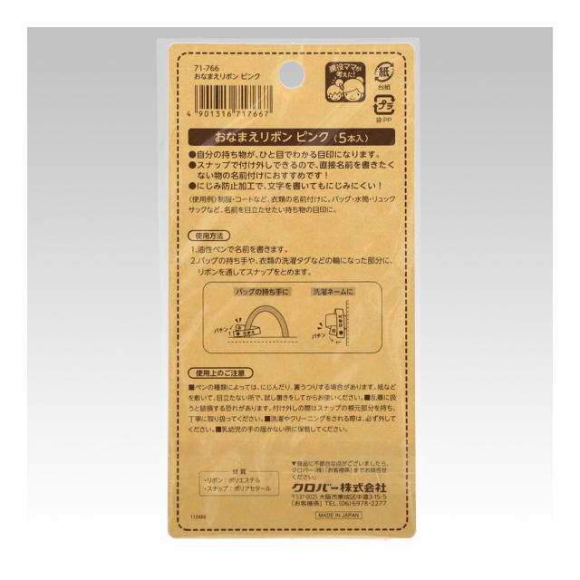 《クロバー》 おなまえリボン(単色) 取り外しができる。直接名前を書きたくないときに。 【日本製】