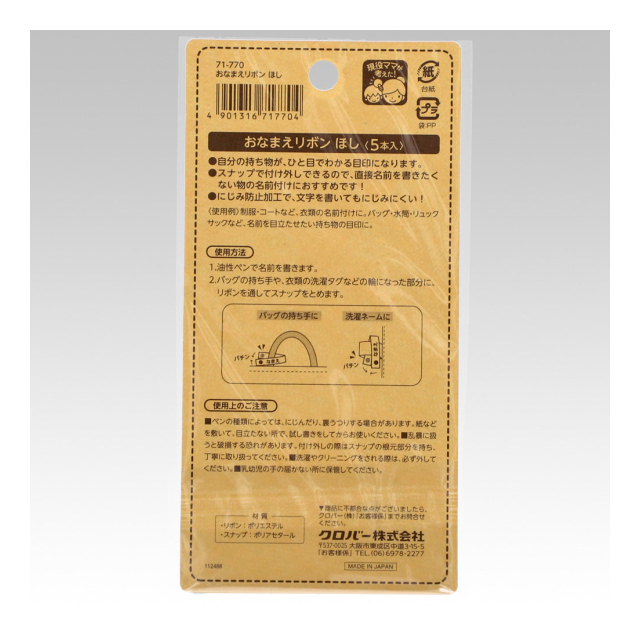 《クロバー》 おなまえリボン(単色) 取り外しができる。直接名前を書きたくないときに。 【日本製】