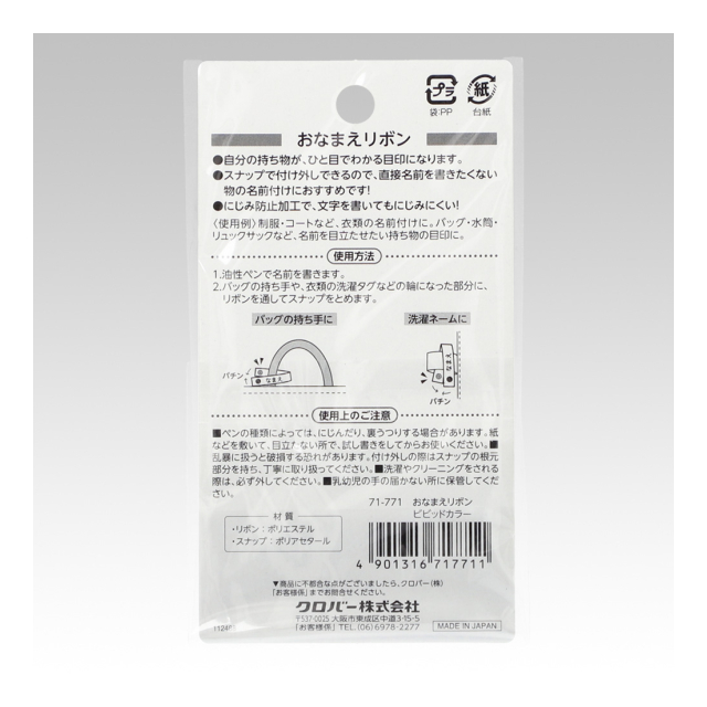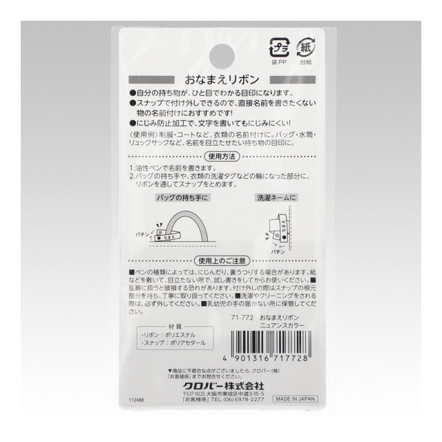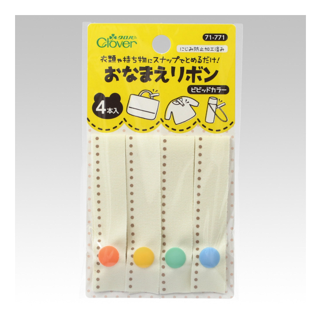 《クロバー》 おなまえリボン(色取合せ) 取り外し可。直接名前を書きたくないときに。 【日本製】