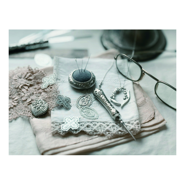 | 本体:錫 クッション布、中綿:ポリエステル 台紙:紙 |