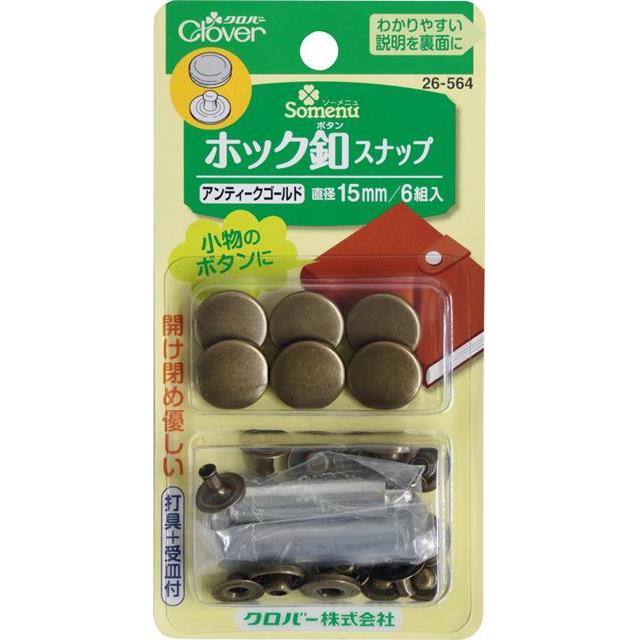 《クロバー》 ホック釦スナップ ニッケル・アンティークゴールド 打具付き 26-563 26-564 【日本製】