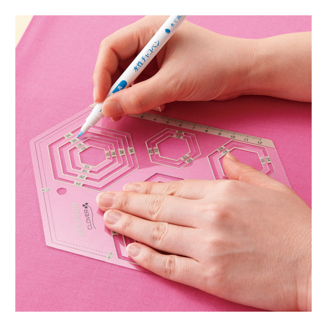 パターンと縫いしろが同時に描けるテンプレートです。サイズ数は13種です。ピースドキルトのお手伝い。お好きなサイズのパターン作れます。布や紙などの作図をしたいところにピーステンプレートを置いて、必要なパターンサイズをなぞります。ワンパッチなどの作品作りに便利です。