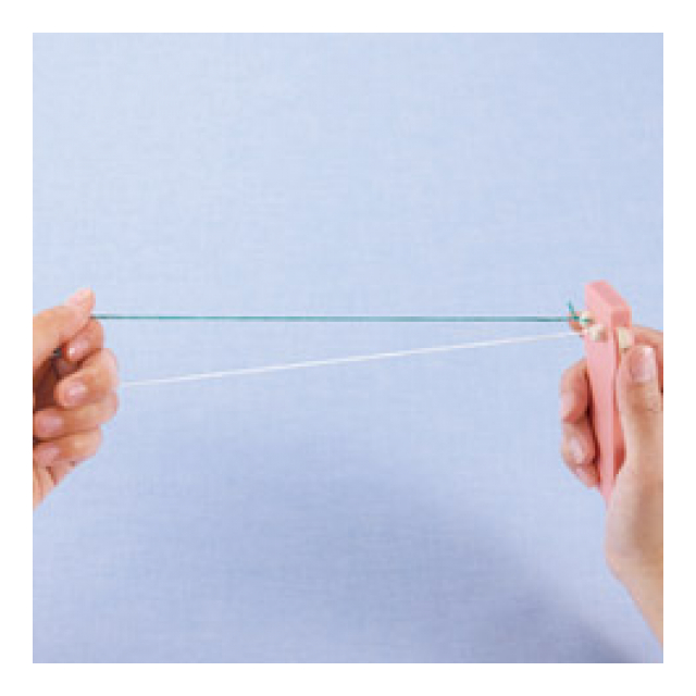 ★こだわりポイント★・2本の糸を合わせて、“よりひも”が作れます(2本の糸を撚りあわせられる)。・2本の糸に同じだけ撚りをかけることができます。・アクセサリーやラッピングに。タッセルのコードに。【適した糸】25番刺しゅう糸、5番刺しゅう糸、並太の毛糸など、切れにくいしっかりした糸