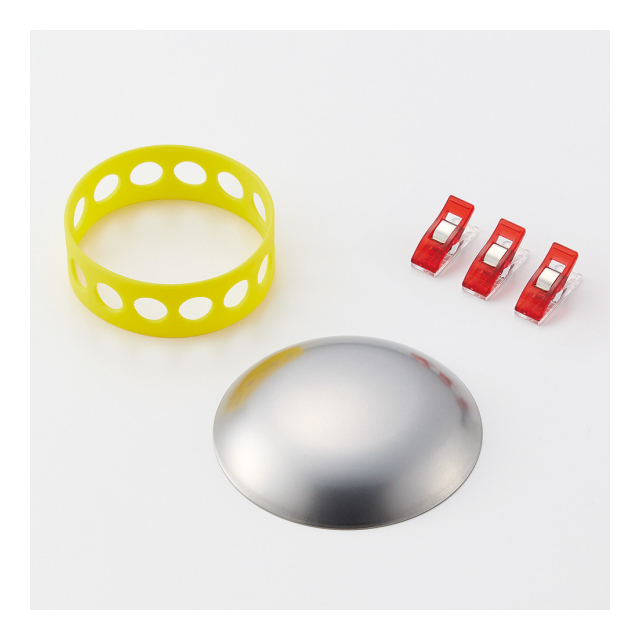 | 【パッケージサイズ】88X140X21mm 【本体サイズ】ステッチドームのサイズ:直径約86mm、高さ:約17mm 【セット内容】・ステッチドーム(1個)・専用ゴム(1個)・仮止めクリップ(3個) |