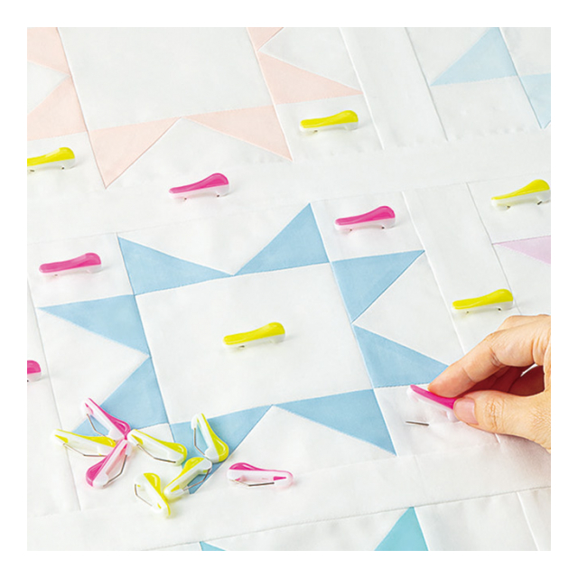 キルティングやミシンキルトのしつけ作業がスムーズにできる、曲げタイプのしつけピンです。