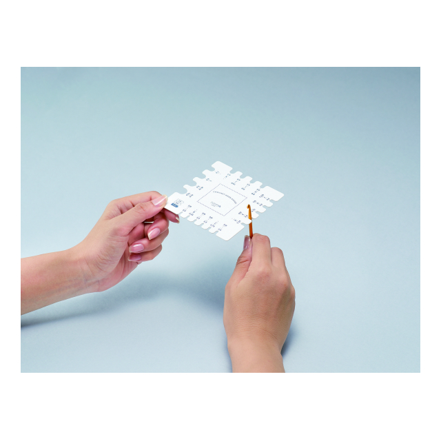 ・棒針ゲージとして‥‥棒針を穴に通すと、太さや号数がわかります。