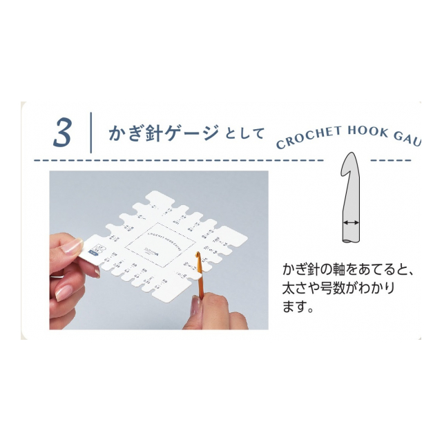 ・かぎ針ゲージとして‥‥かぎ針の軸をあてると太さや号数がわかります。