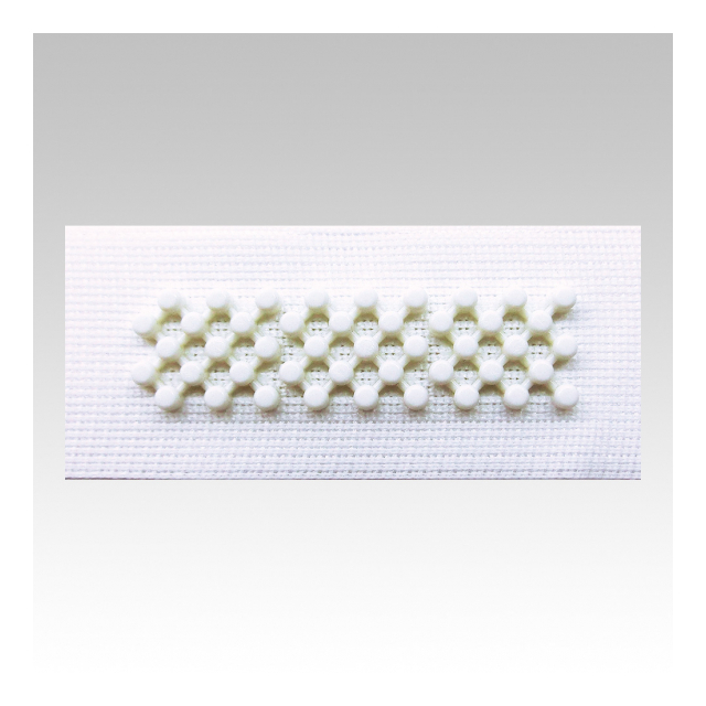 開ける音が静かなブロック型スナップ付きテープ。 バッグや小物、アウターに。 ブロック型の樹脂製スナップ付テープです。ブロック同士を押しつけてスナップのように閉じます。テープを縫って取り付けます。 開ける時にバリバリ音がせず、繊維のからみつきもありません。 スナップ面が長いので袖口を調整するアジャスターとしても使用できます。
