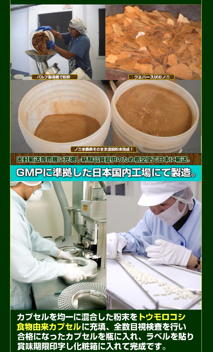【ハワイノニカプセル】・ハワイ島火山性土壌のミネラル豊富な乾燥ノニ粉末!