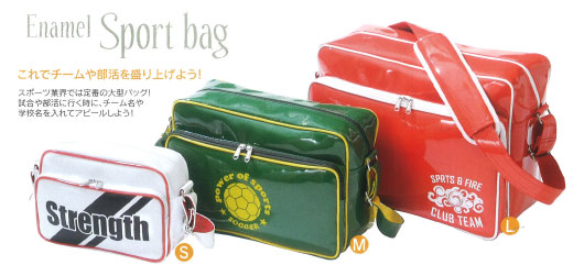 正面にオリジナルプリントを入れたり、生地の組み合わせを変えたりして、オリジナルのエナメルバッグが作れます。