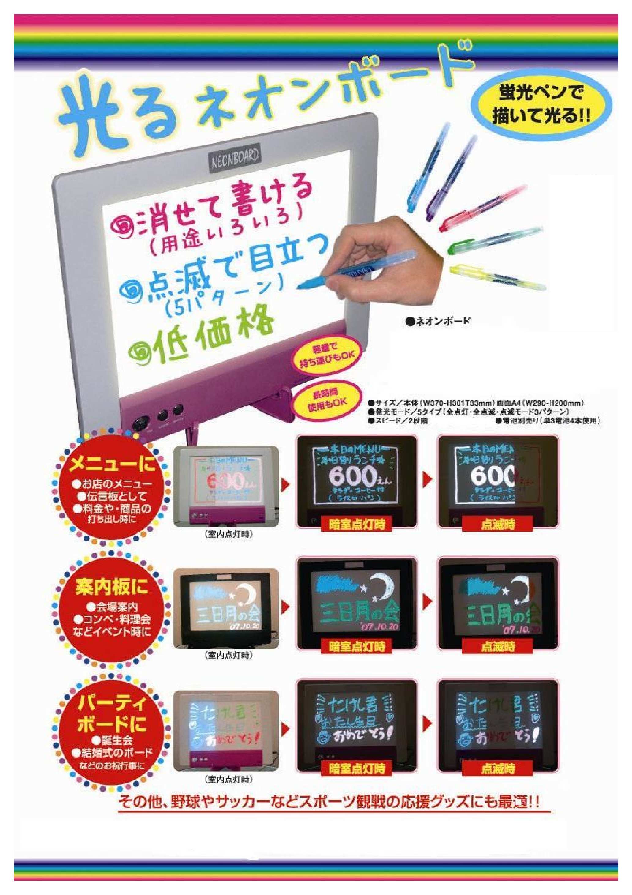 ●光る手書きのメニュー、案内板、パーティーボードなどに是非ご利用ください。