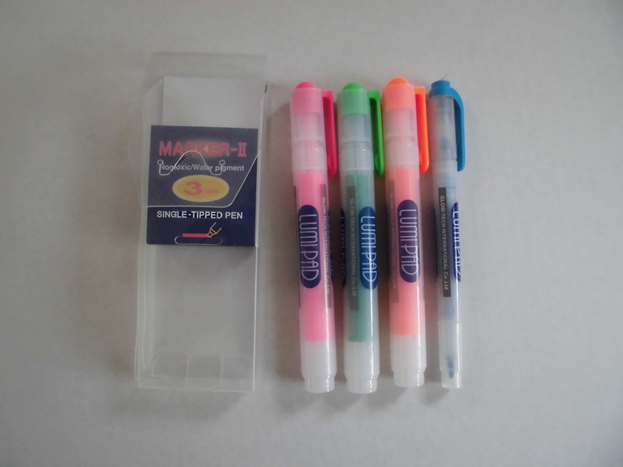 ●市販の水性蛍光ペンで描いた文字やイラストがネオンのように光ります。