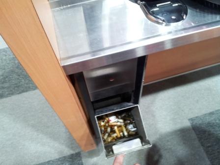 分煙の出来ないパチンコ店やゲームセンター、喫煙所に置いてある灰皿は消火に水を使用します。
