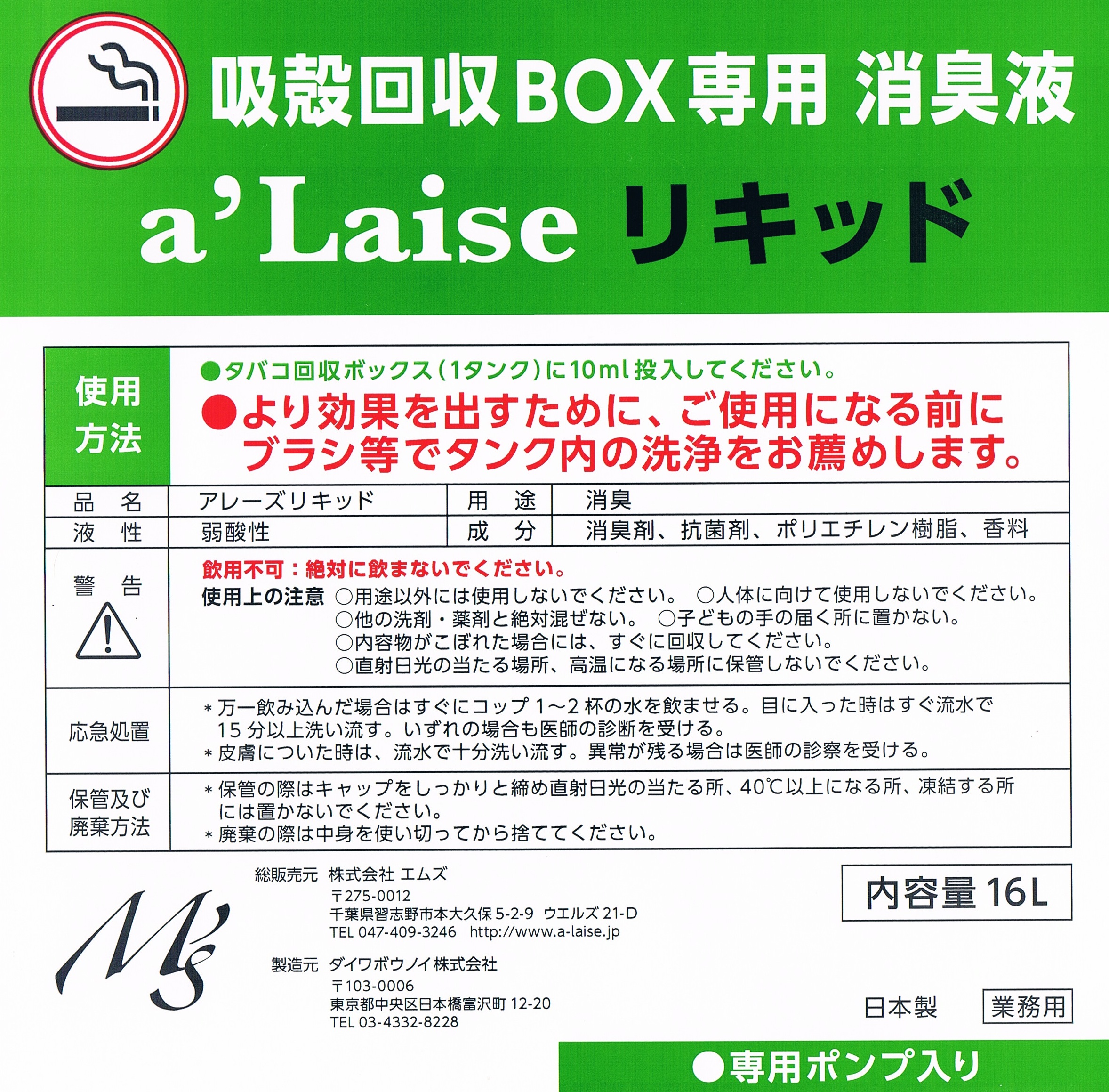 アレーズ・リキッド (業務用タバコ吸殻用消臭剤)