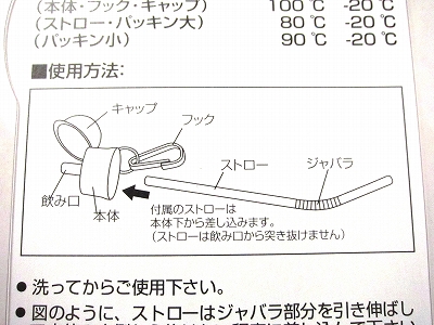 冷凍、熱い飲料、炭酸飲料での使用不可