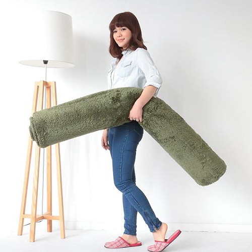やさしいラグマットはとても軽量。女性でも気軽に畳んだり、丸めたりしていただけます。お掃除やお選択の際に、取扱いがかんたんです!