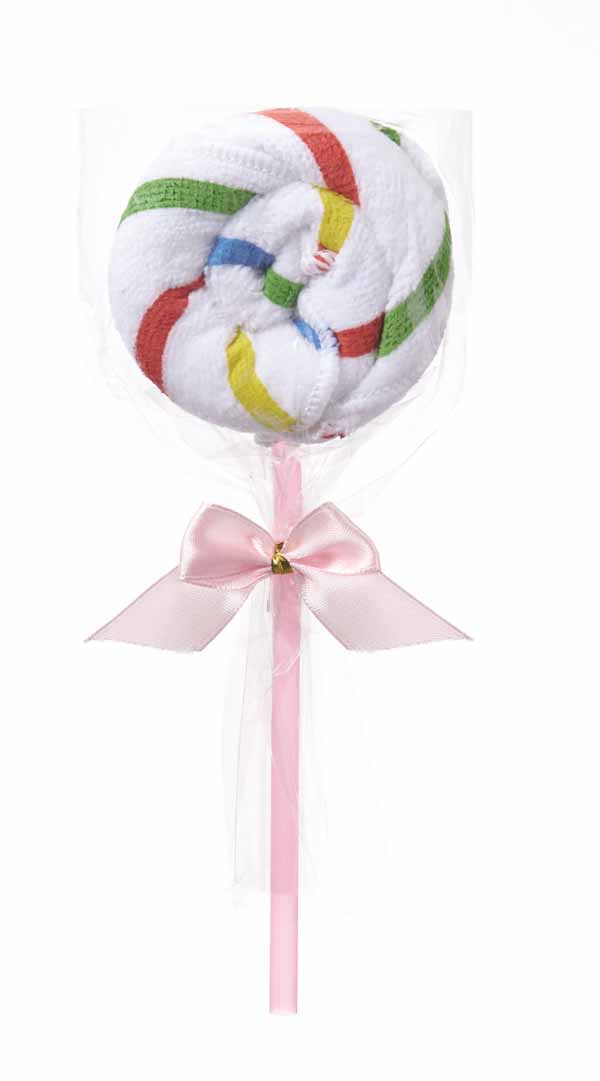 かわいいストライプのハンドタオルがおいしそうなペロペロキャンディに!とても楽しいプレミアムです