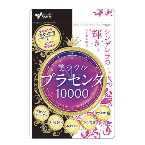 美容を気にする女性に向けたサプリメント。1日2粒でプラセンタ10,000mg(原料換算)のほか、コラーゲン、ヒアルロン酸、セラミド、燕の巣、エラスチンを配合しています。翌日が楽しみになるシンデレラタイムのお供に。