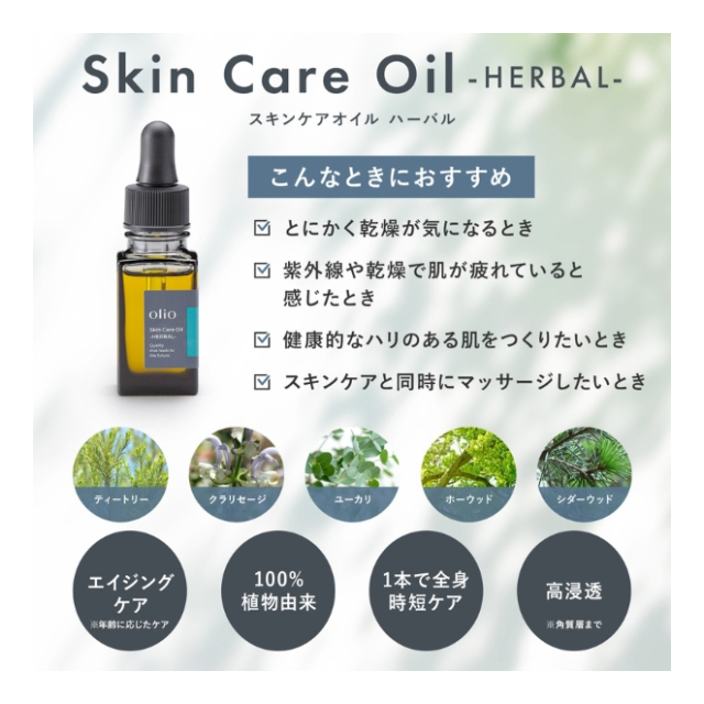 スキンケアオイル ハーバル Skin Care Oil -HERBAL-(15mL)/茶ノ実油 全身用ケアオイル 保湿 無添加