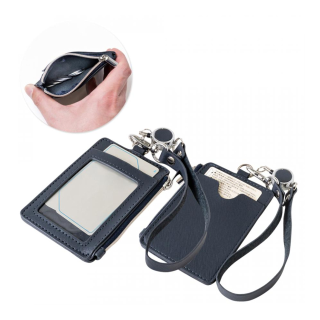 小銭入れが付いたパスケース。背面にもポケット付きでIDケースとしても使え、リール式ストラップが更に使いやすさ抜群です。
